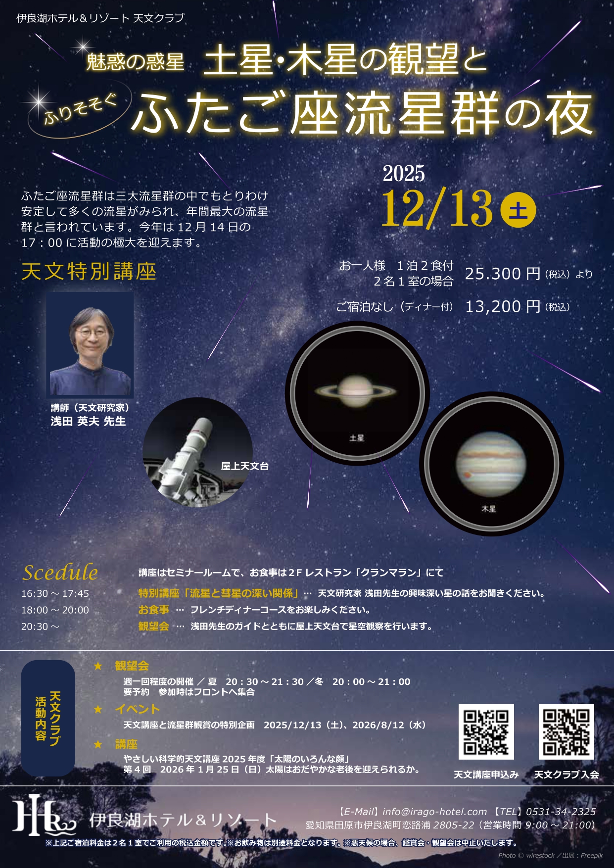 特別講座「流星と彗星の深い関係」・・・ 文研究 浅田先生の興味深い星の話をお聞きください。